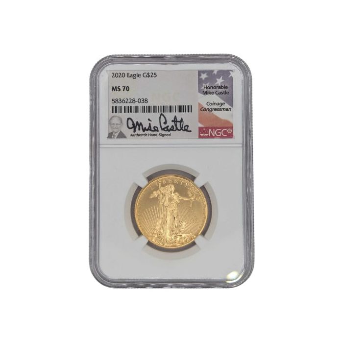 Purchase the 2020 NGC MS-70 1/2 oz American Gold Eagle Coin - Mike Castle Label online from SD Bullion.