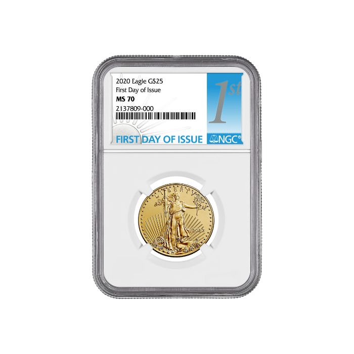 Today, SD Bullion offers 2020 1/2 oz American Eagle Gold Coins, sealed and certified by NGC as an MS-70 First Day of Issue coin.