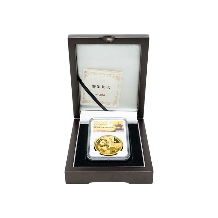 In addition to an alluring depiction of Pandas, these coins contain 2 Troy oz of fine gold and are housed in an original mint box with a Certificate of Authenticity. They were also taken among the coins available for purchase on day #1 of public release and sealed by NGC as perfect PF-70 coins.