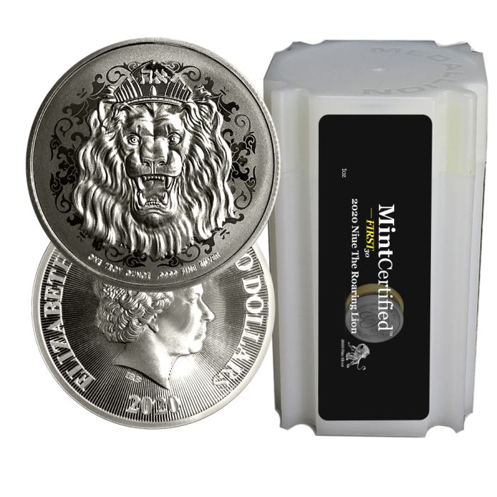 Buy MintCertified™ 2019 Roaring Lions Silver Tubes of 20 online here! Not only are these tubes of 20 MintCertified™, but they are also a part of our FIRST30 program which guarantees these silver coin tubes were minted within the first thirty days of production for the 2019 Roaring Lion Silver Coin.