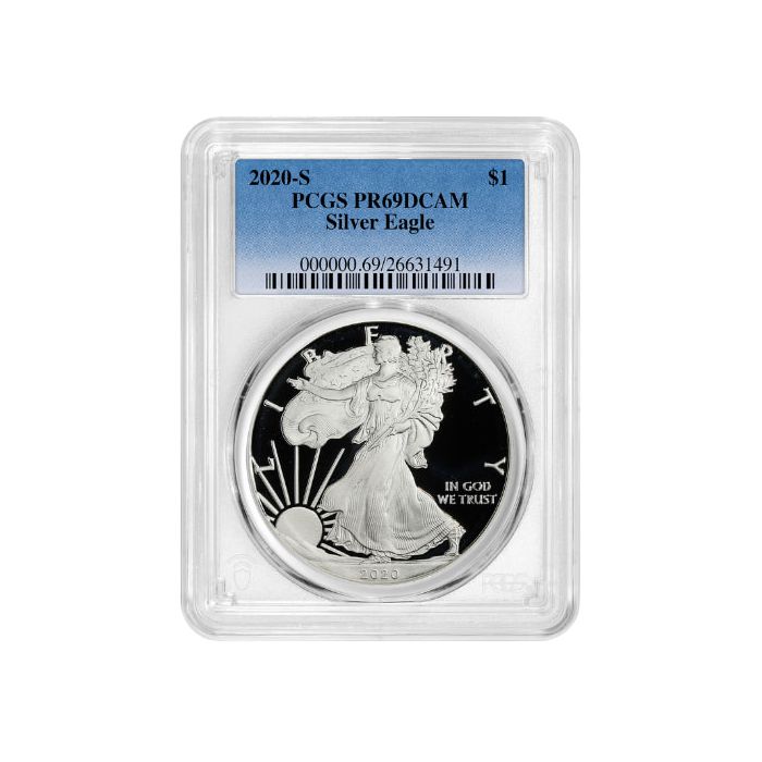 Purchase the 2020-S PCGS PR-69 1 oz American Silver Eagle Proof Coin online 24/7 from SD Bullion.