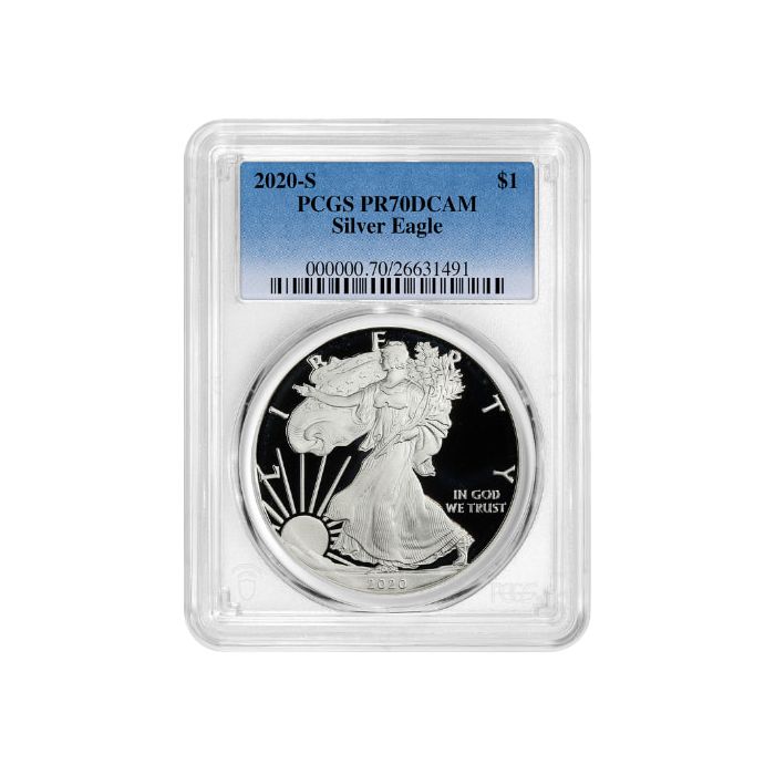 Purchase 2020-S PCGS PR-70 1 oz American Silver Eagle Proof Coin online, 24/7, from SD Bullion.