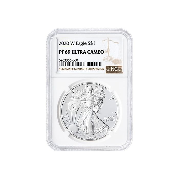At SD Bullion, you can purchase 2020-W 1 oz American Silver Eagle Proof Coins today, sealed in NGC slabs and graded as PF-69 coins.