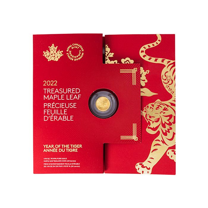 2022 1/10th oz Treasured Gold Maple Leaf Coin - Year of the Tiger Special Package