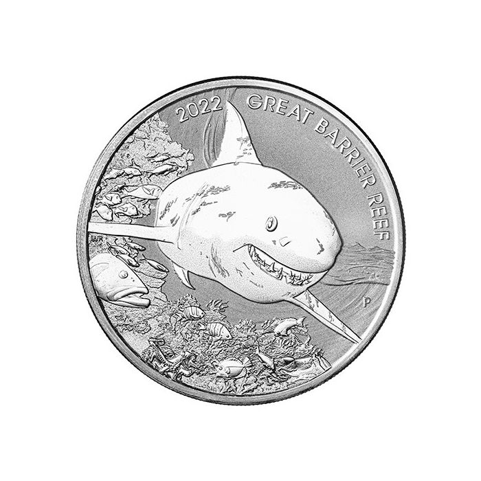 This silver coin, in particular, contains 2 Troy oz of 99.99% pure silver and features the White Shark, a titan of the Great Barrier Reef.