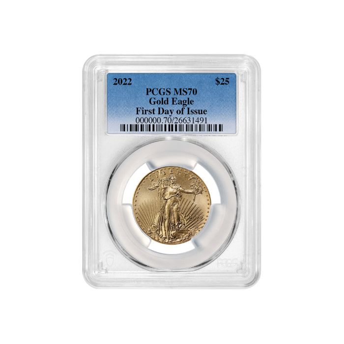 At SD Bullion, you can purchase First Day of Issue 2022 1/2 oz Gold Eagles, sealed in PCGS slabs and graded as perfect MS-70 coins.