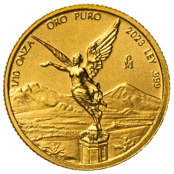 The 2023 1/10 oz Mexican Gold Libertad coins are 99.9% pure gold, with a yearly production in the Mexican Mint.