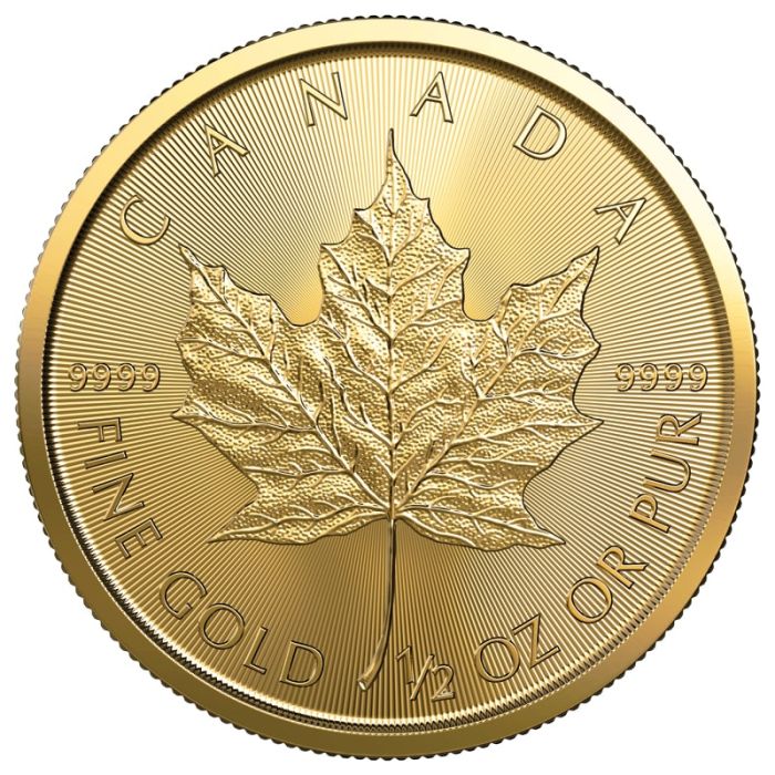 The ½ oz Gold Maple Leaf has a face value of 5 dollars and carries legal tender status backed by the Canadian Government.