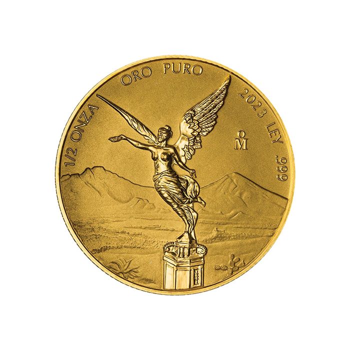 The obverse of the half-ounce coin Gold Libertad and the other fractional sizes display only the current Mexican Coat of Arms.