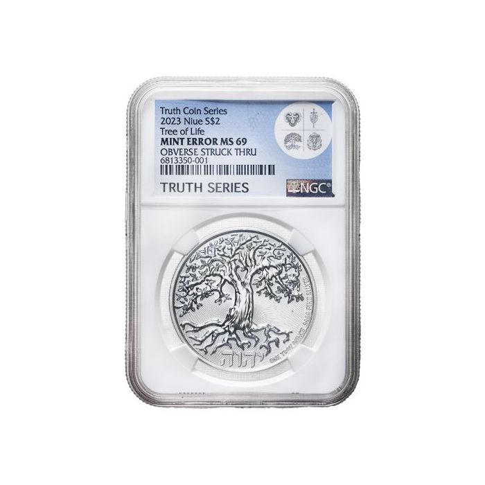 2023 NGC MS-69 Mint Error Obverse Struck Thru Tree of Life Silver Coin