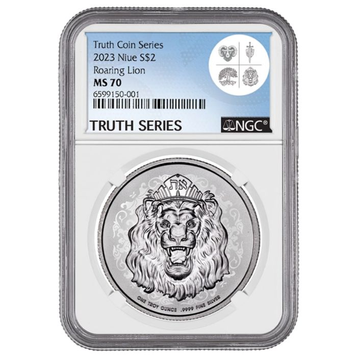 The 2023 Silver Roaring Lion NGC MS-70 1 oz Coin has been given a perfect MS-70 grade, meaning the coin has zero imperfections. Graded by NGC, one of the most well-known grading agencies in the world, this prestigious MS-70 rating is the highest grade that can be given to a coin. Slabbed in SD Bullion's exclusive, custom Truth Series label, NGC's certification provides customers with an additional layer of assurance that their coin is authentic and legitimate.
