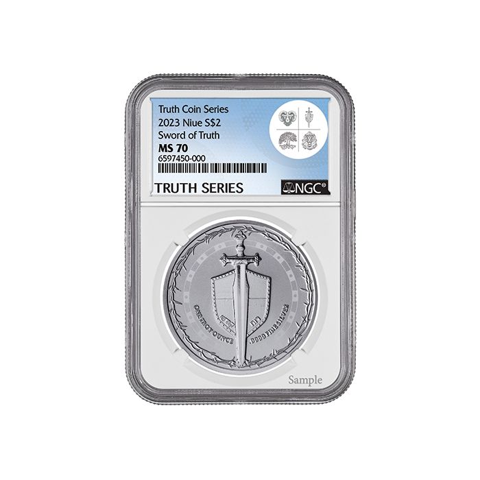 The 2023 Silver Sword of Truth NGC MS-70 1 oz Coin has been given a perfect MS-70 grade, meaning the coin has zero imperfections. Graded by NGC, one of the most well-known grading agencies in the world, this prestigious MS-70 rating is the highest grade that can be given to a coin. Slabbed in SD Bullion's exclusive, custom Truth Series label, NGC's certification provides customers with an additional layer of assurance that their coin is authentic and legitimate.