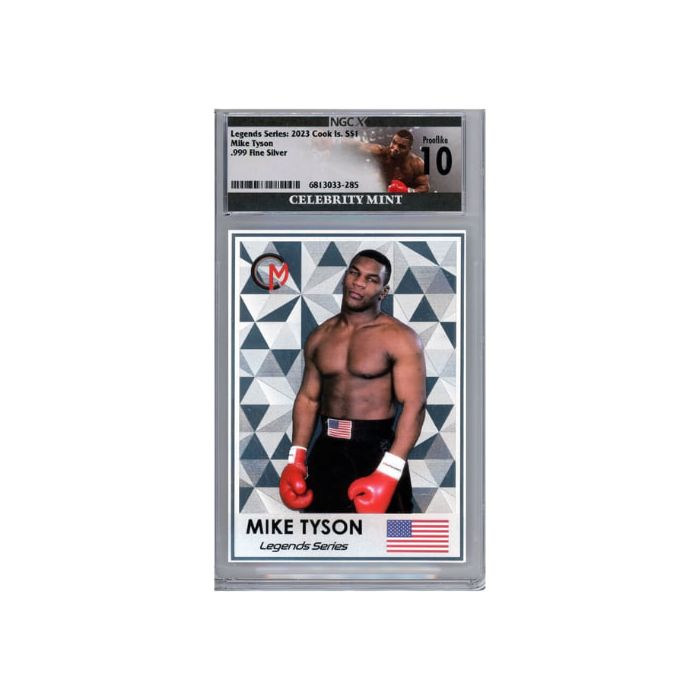 At SD Bullion, you can acquire the 2023 3 Gram Celebrity Mint Mike Tyson Silver Trading Coin from the Legend Series, sealed as an NGCX 10 sample.
