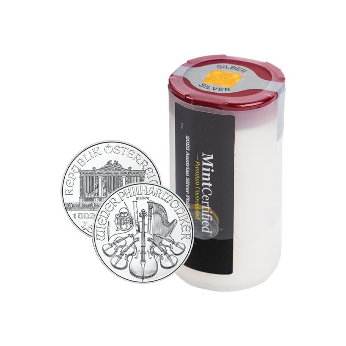 - Each tube contains 20 units of 2023 1 oz Silver Philharmonic Coins;