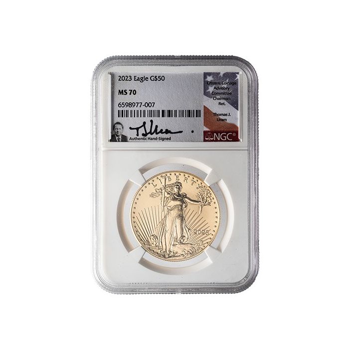 Purchase the 2023 NGC MS-70 1 oz American Gold Eagle Coin - Thomas J. Uram Label online, 24/7, from SD Bullion.