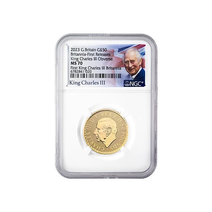 Purchase the 2023 NGC MS-70 First Releases 1/2 oz Britannia Gold Coin - King Charles III Obverse and Special Label online, 24/7, from SD Bullion.