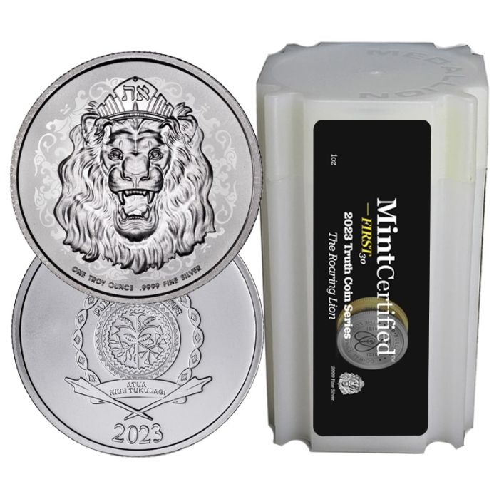 Buy the 2023 1 oz Silver Roaring Lion MintCertified First 30 Sealed Tube Online