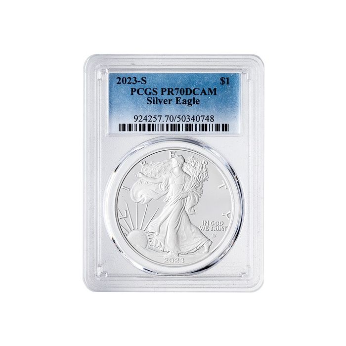Today, SD Bullion offers 2023-S 1 oz American Eagle Silver Proof Coins, sealed in PCGS slabs and certified as PR-70 samples.