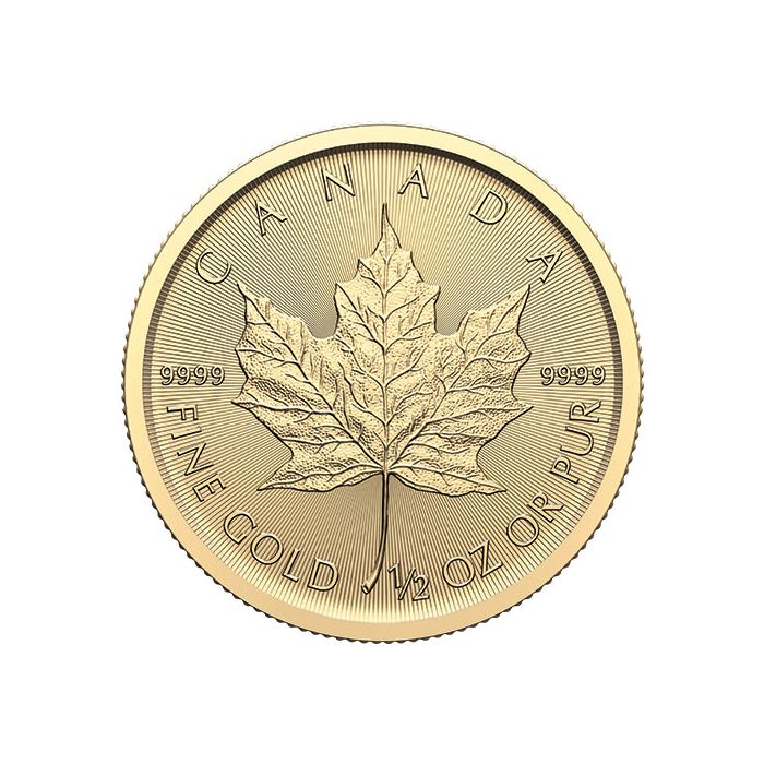 Following the series patterns, the 1/2 oz Gold Maple Leaf is made of 99.99% pure gold and has a face value of CAD 20, fully guaranteed by the Canadian Government.