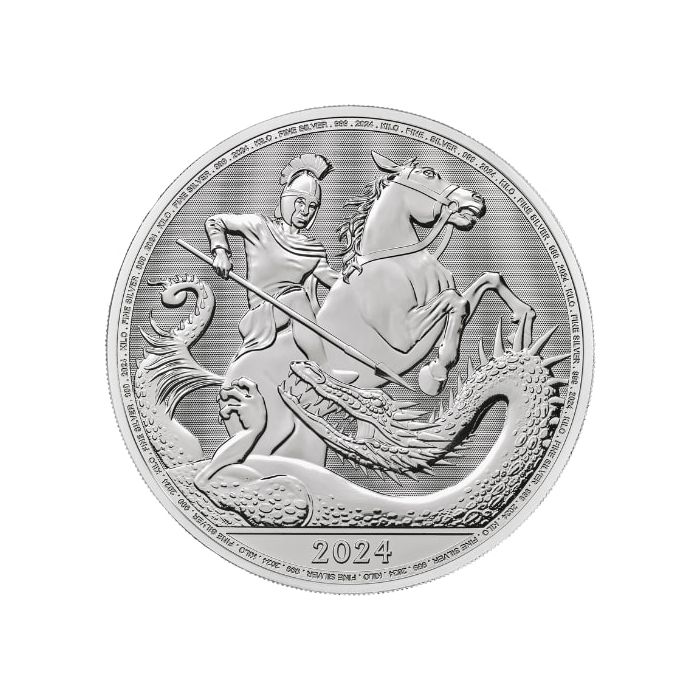 Purchase the 2024 1 Kilo St George and the Dragon Silver Coin online, 24/7, from SD Bullion.