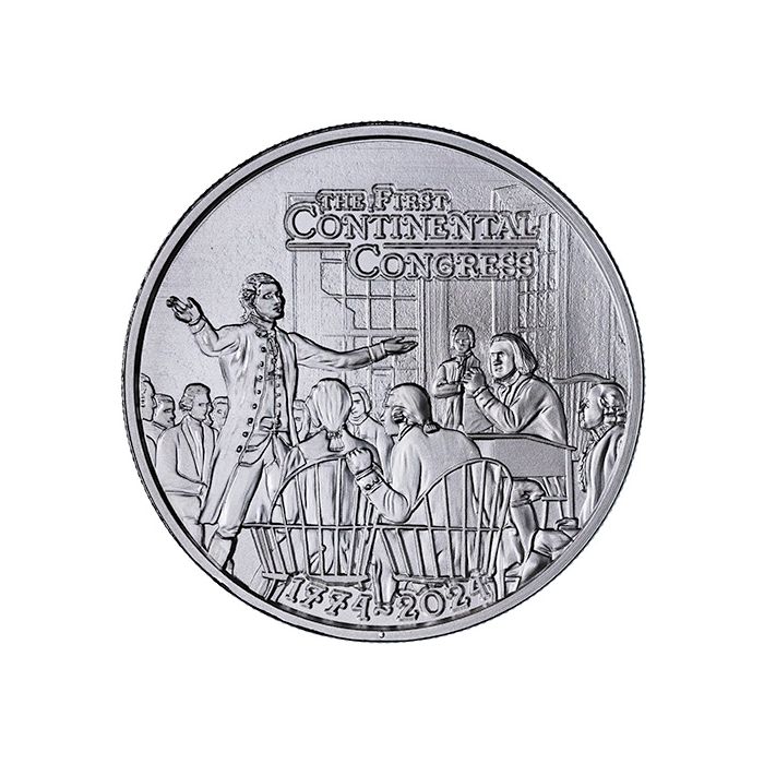 The inscriptions on this side read “The First Continental Congress” and “1774-2024.”