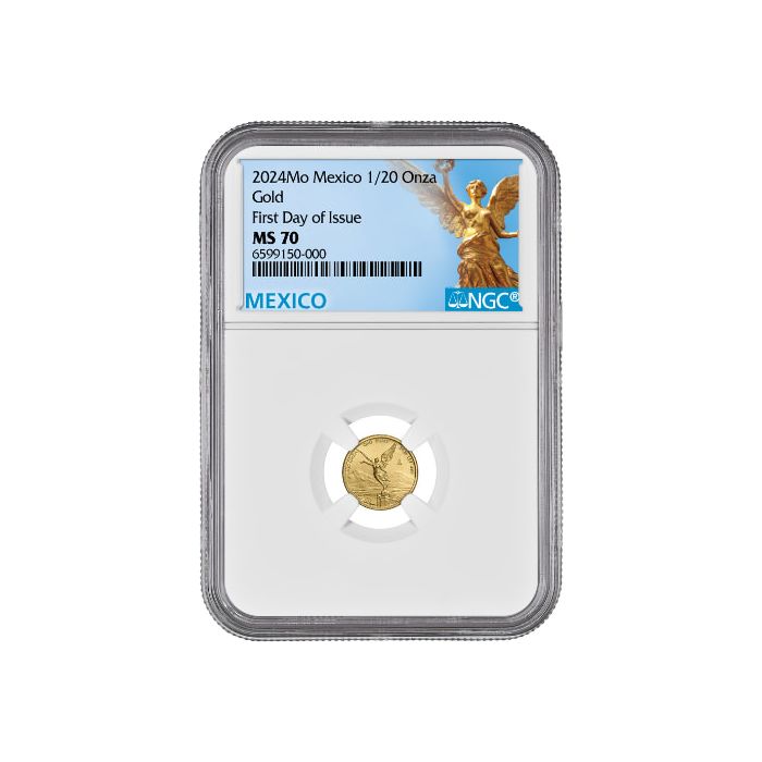 SD Bullion offers the 2024 1/20 oz Mexican Gold Libertad Coins, purchased from the Mexican Mint on the first day of their official release and graded as MS-70 samples by NGC.