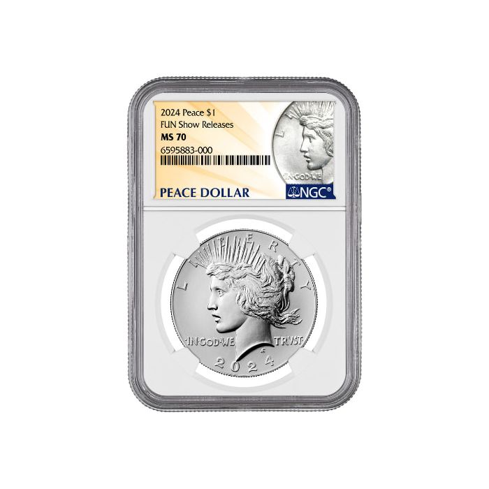 Purchase the 2024 NGC MS-70 Peace Dollar Silver Coin FUN Show Releases online, 24/7, from SD Bullion.