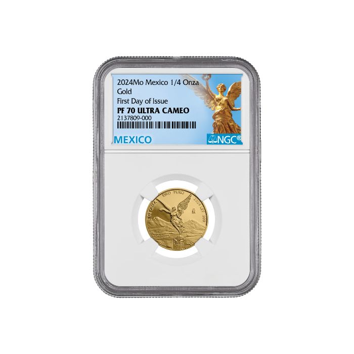 At SD Bullion, you can find 2024 1/4 oz Mexican Gold Libertad Proof Coins purchased from the Mexican Mint on the very first day of their official release, graded by NGC as PF-70 coins.