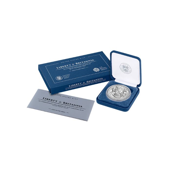 The US Mint and the Royal Mint have collaborated to create the exquisite 2024-P 1 oz Liberty and Britannia Proof Silver Medal.