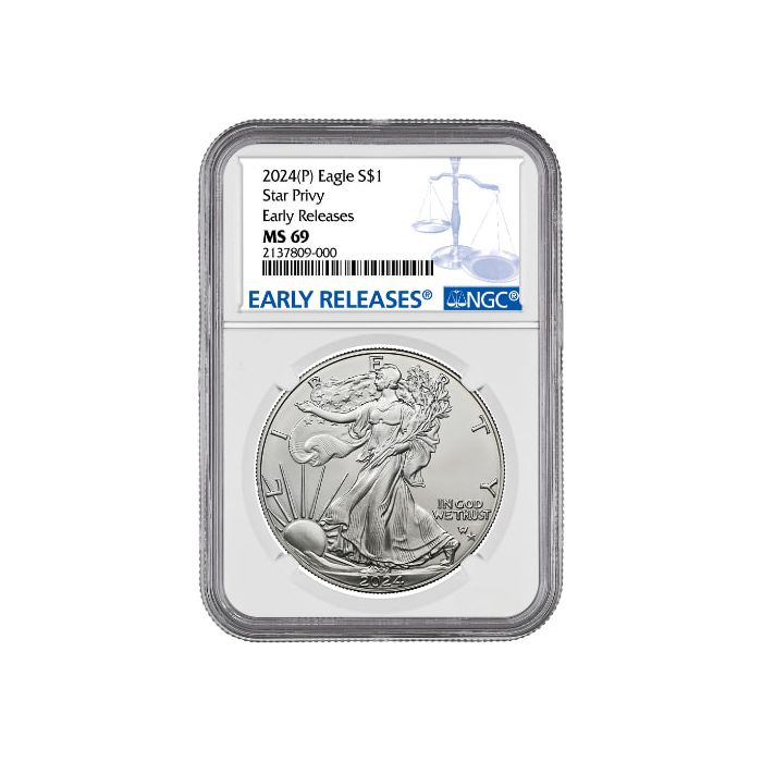 Purchase the 2024-(P) NGC MS-69 Early Releases Star Privy 1 oz American Silver Eagle Coin online from SD Bullion.
