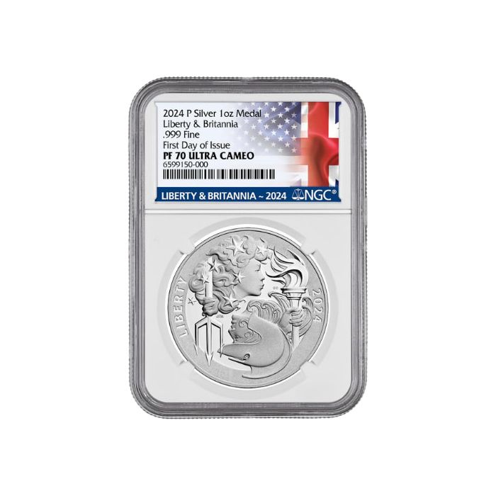Buy 2024-P 1 oz Liberty and Britannia Proof Silver Medals Online at SD Bullion, graded NGC PF-70 and "First Day of Issue"
