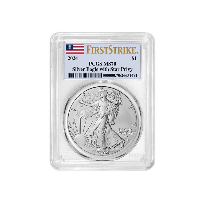 Buy 2024-(P) PCGS MS-70 First Strikes Star Privy 1 oz American Silver Eagle Coins at SD Bullion