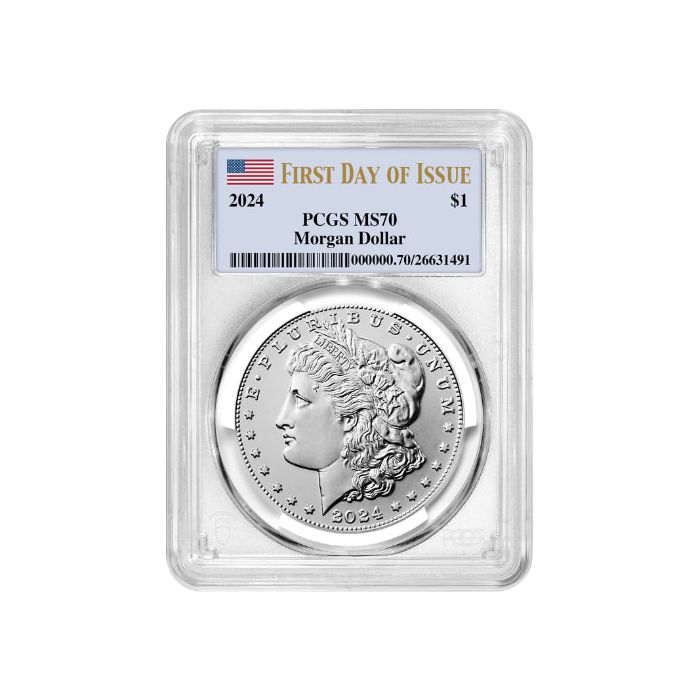Shop the 2024 PCGS MS-70 First Day of Issue Morgan Dollar Silver Coin online, 24/7, from SD Bullion.