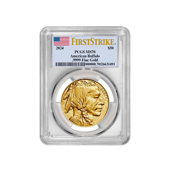 Act fast to buy your 2024 PCGS MS-70 First Strike 1 oz American Gold Buffalo Coin while supplies last. Add them to your shopping cart now or call our bullion experts at 1(800)294-8732.