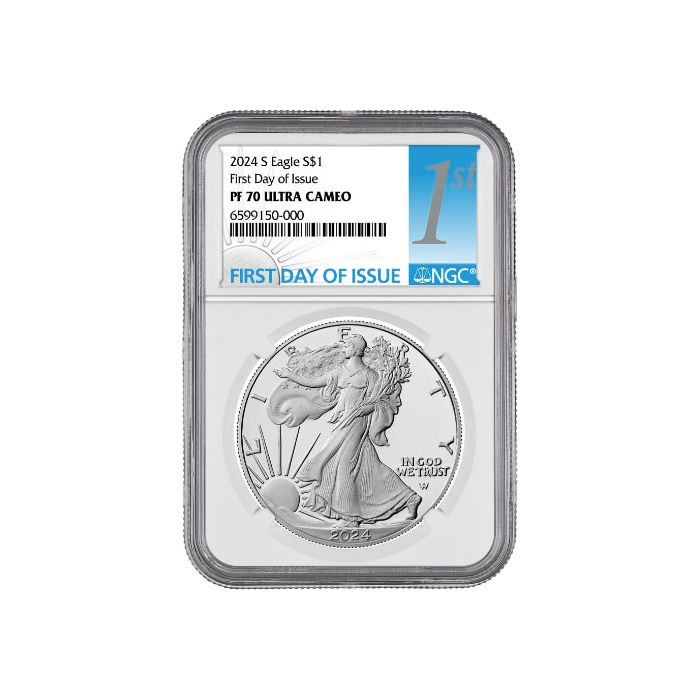 Shop the 2024-S NGC PF-70 First Day of Issue 1 oz American Silver Eagle Coin online from SD Bullion.