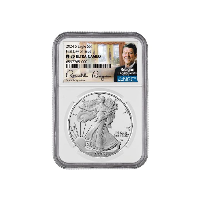 Shop the 2024-S NGC PF-70 First Day of Issue 1 oz American Silver Eagle Proof Coins - Reagan Label online, 24/7, from SD Bullion.