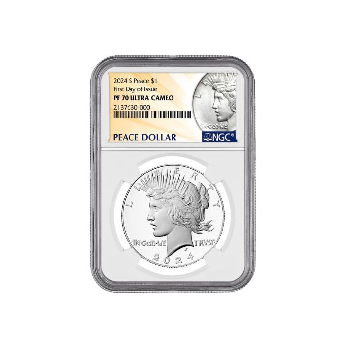 Purchase the 2024-S NGC PF-70 UC First Day of Issue Peace Dollar Proof Silver Coin - Peace Dollar Label online, 24/7, from SD Bullion.