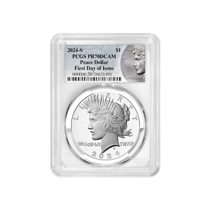 Buy 2024-S PCGS PR-70 UC First Day of Issue Peace Dollar Proof Silver Coin - Peace Dollar Label at SD Bullion