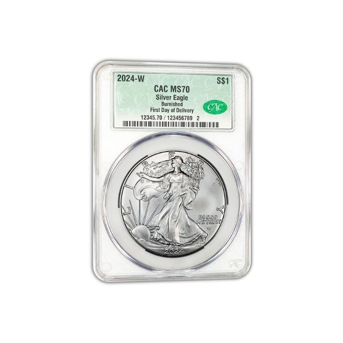 Buy 2024-W CAC MS-70 First Day of Delivery 1 oz American Silver Eagle Burnished Coins at SD Bullion