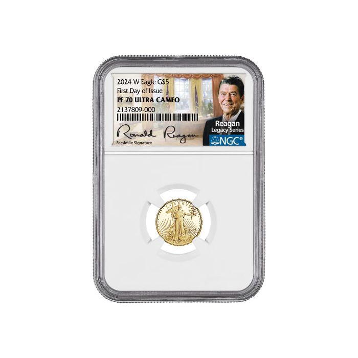 2024-W NGC PF-70 First Day of Issue 1/10 oz American Gold Eagle Proof Coin - Exclusive Reagan Label