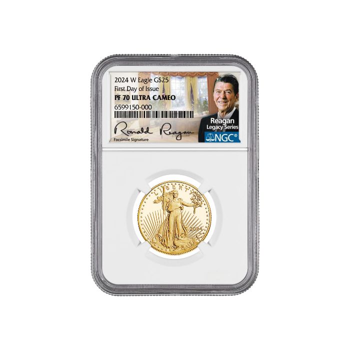 Add the 2024-W NGC PF-70 UC FDI 1/2 oz Proof Gold Eagle - Exclusive Ronald Reagan Label to your cart and shop online from SD Bullion.