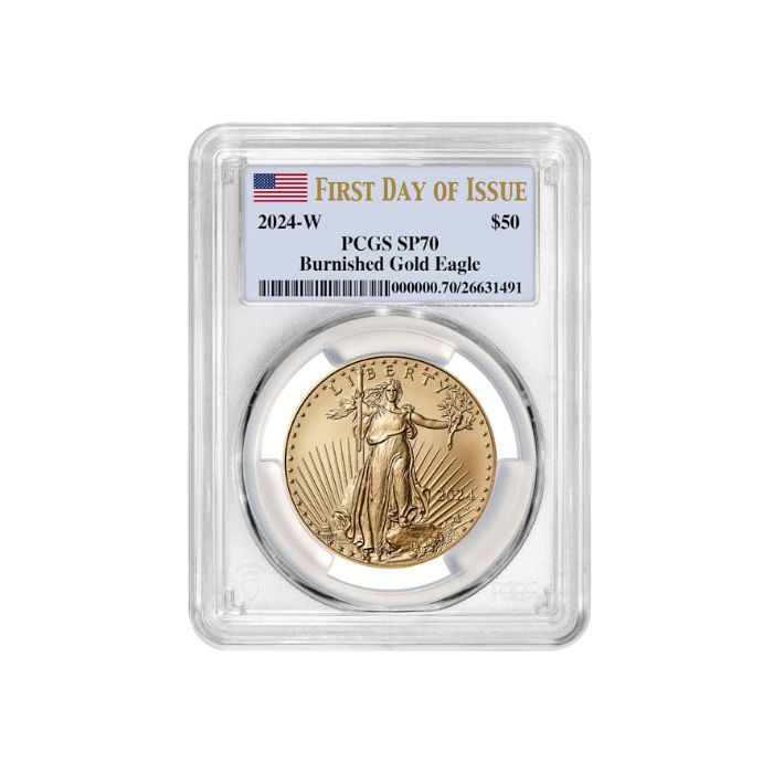 Order the 2024-W PCGS SP-70 First Day of Issue 1 oz American Gold Eagle Burnished Coin online, 24/7, from SD Bullion.