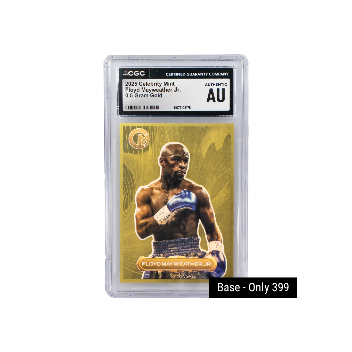 Celebrity Mint’s Legends Series bridges the worlds of sport, culture, and collectible artistry — honoring athletes whose influence transcends competition. This gold trading card captures Floyd Mayweather Jr.’s brilliance in and beyond the ring, offering collectors a premium fusion of fine gold and sports legacy.