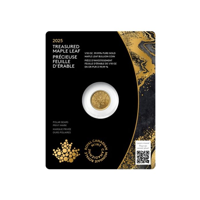Shop the 2025 1/10 oz Gold Maple Leaf coin with the Polar Bear Privy Mark online from SD Bullion.