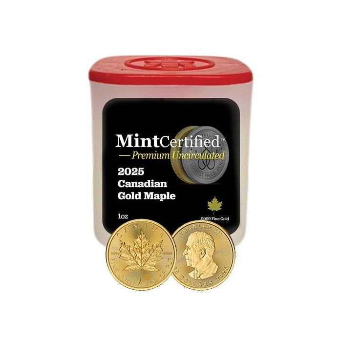 Today, SD Bullion offers the 2025 1 oz Canadian Gold Maple MintCertified™ Premium Uncirculated Sealed Tubes.