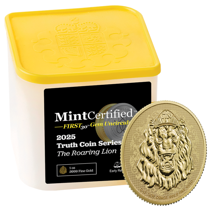 Whether you’re investing in gold or expanding your Truth Series collection, this sealed tube of 2025 Roaring Lions offers unmatched quality, security, and early-issue prestige. Only a limited number of tubes qualify for the MintCertified™ FIRST30 designation—don’t miss your chance to lock in a sealed 10-coin tube of these powerful gold issues.