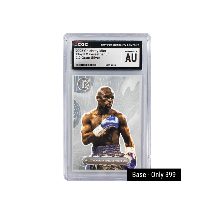 Secure your place ringside in the Celebrity Mint Legends Series with the 2025 3 Gram Floyd Mayweather Silver Trading Coin – Blind Pack.