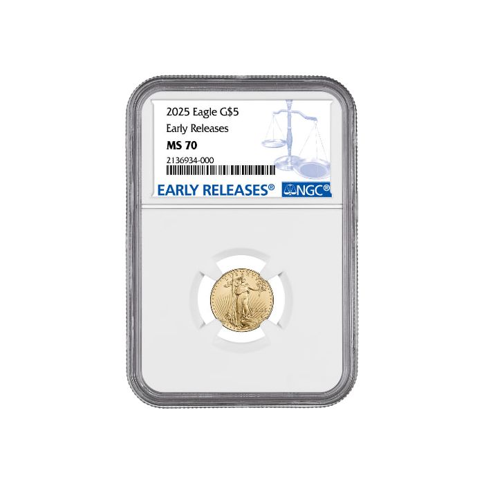 Purchase the 2025 NGC MS-70 Early Releases 1/10 oz American Gold Eagle Coin online from SD Bullion.