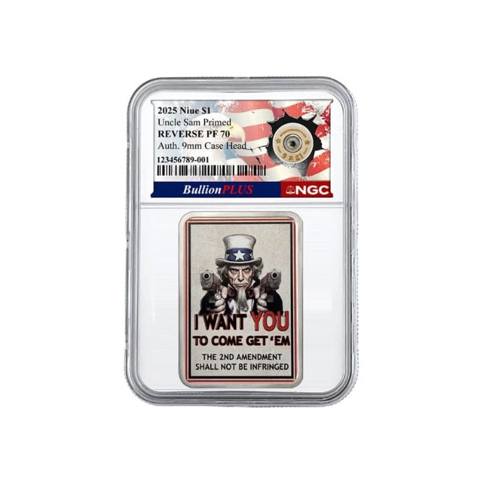 Buy 2025 NGC PF-70 1 oz Uncle Sam Primed Authentic 9mm Case Head Reverse Proof Silver Coins at SD Bullion