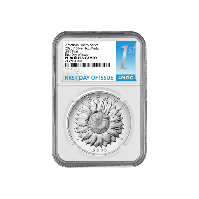 The American Liberty Silver Medal Program expands on over two centuries of Mint artistry, reimagining Liberty beyond allegory to reflect the living principles that sustain it. The 2025 Sunflower and Bee design is both elegant and symbolic—a reminder that liberty flourishes only through continual care and effort.